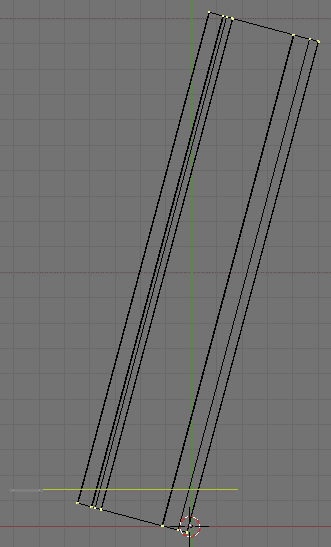 Mit dem Knifetool <Shift>+<k>->Exact Line schneiden wir nun durch unser Objekt, wie in der Abb. zu erkennen, auch hier drücken wir die mittlere Maustaste, um den Schnitt entlang der Achse zu fixieren