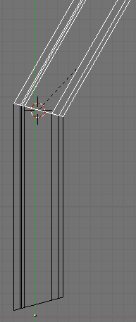 Wie mittlerweile bekannt drehen wir das Objekt mit <r> und gedrückter <Strg>-Taste so, dass die beiden Objekte im richtigen winkel zueinander stehen wie in der Abb. zu erkennen.
